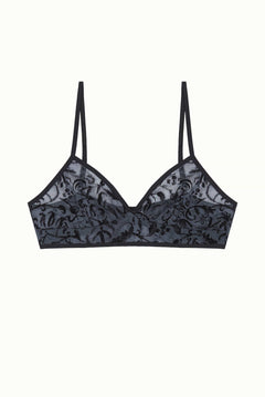 Braguitas confeccionadas en tull semitransparente azul con estampado barroco.