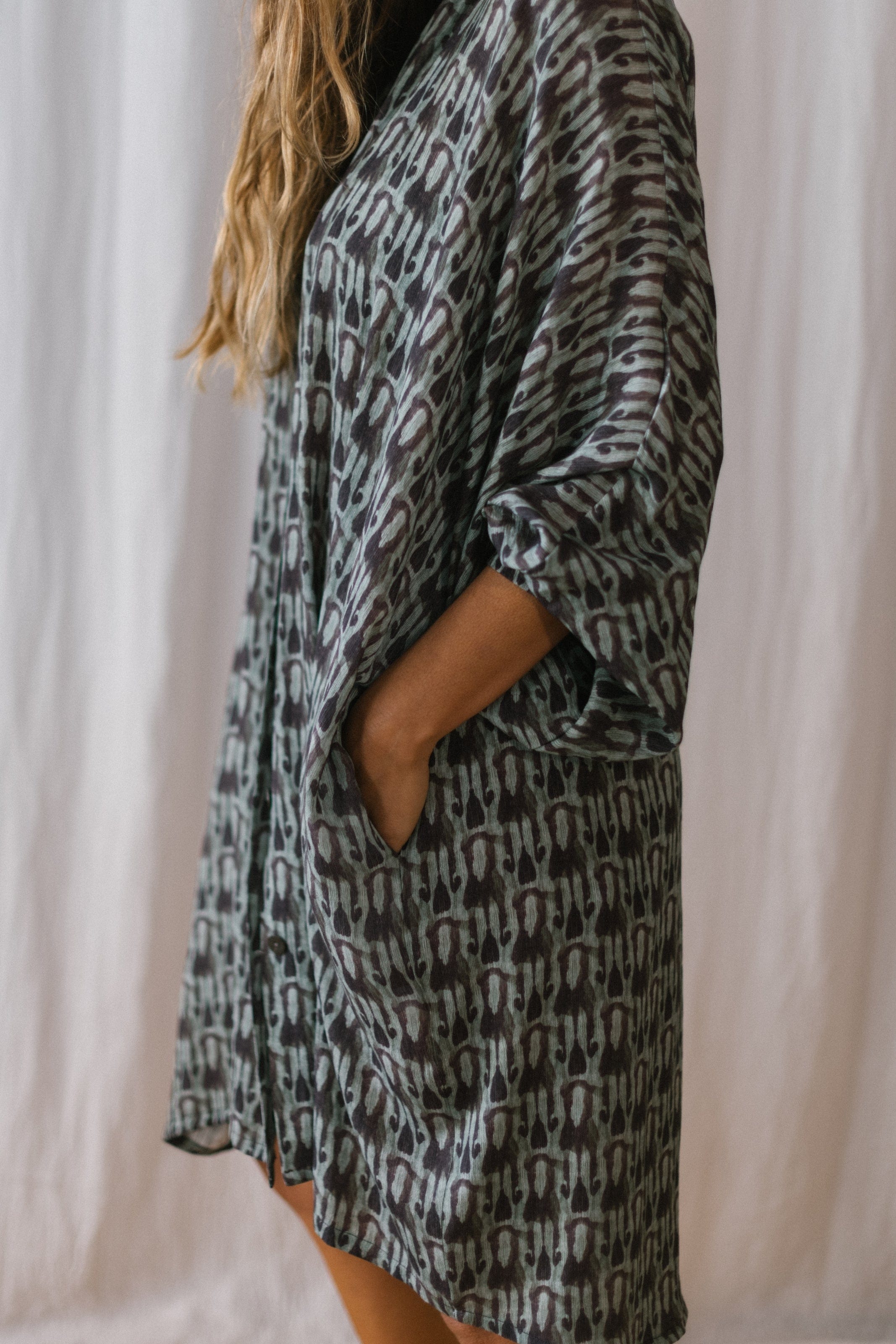 Muy cómodo y fresquito. Ideal para combinar encima de bañadores y bikinis abierto de arriba abajo con botones de nácar.