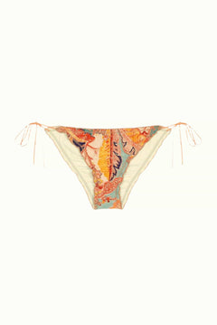 Bikini made with a knitted fabric printed with lurex glitter with paisly print in bright colors.