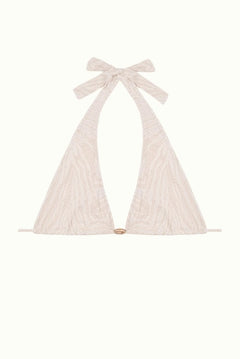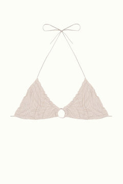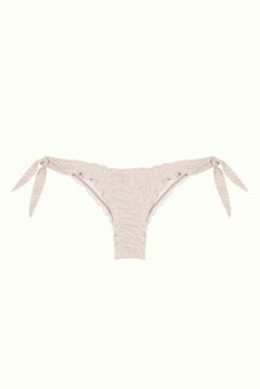 White bikini bottoms with zebra texture and different shades of ecru. A basic with our sophisticated touch with rustic hoops on the sides.