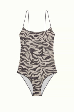 Features an animal print in green tones on a beige background, crafted in semi-transparent rustic fabric.