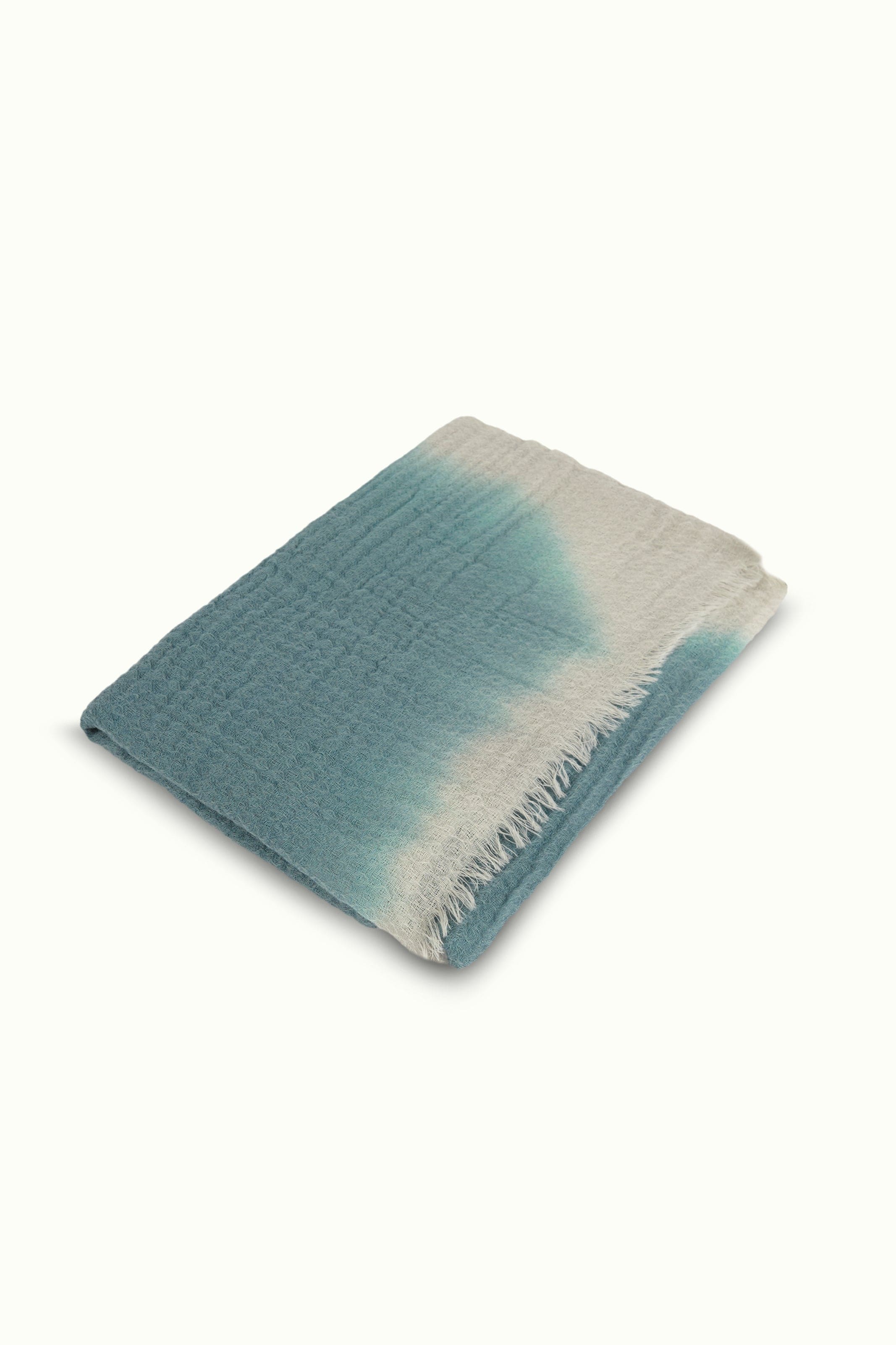 Scarf made of wool, with a cream background and a soft blue gradient.
