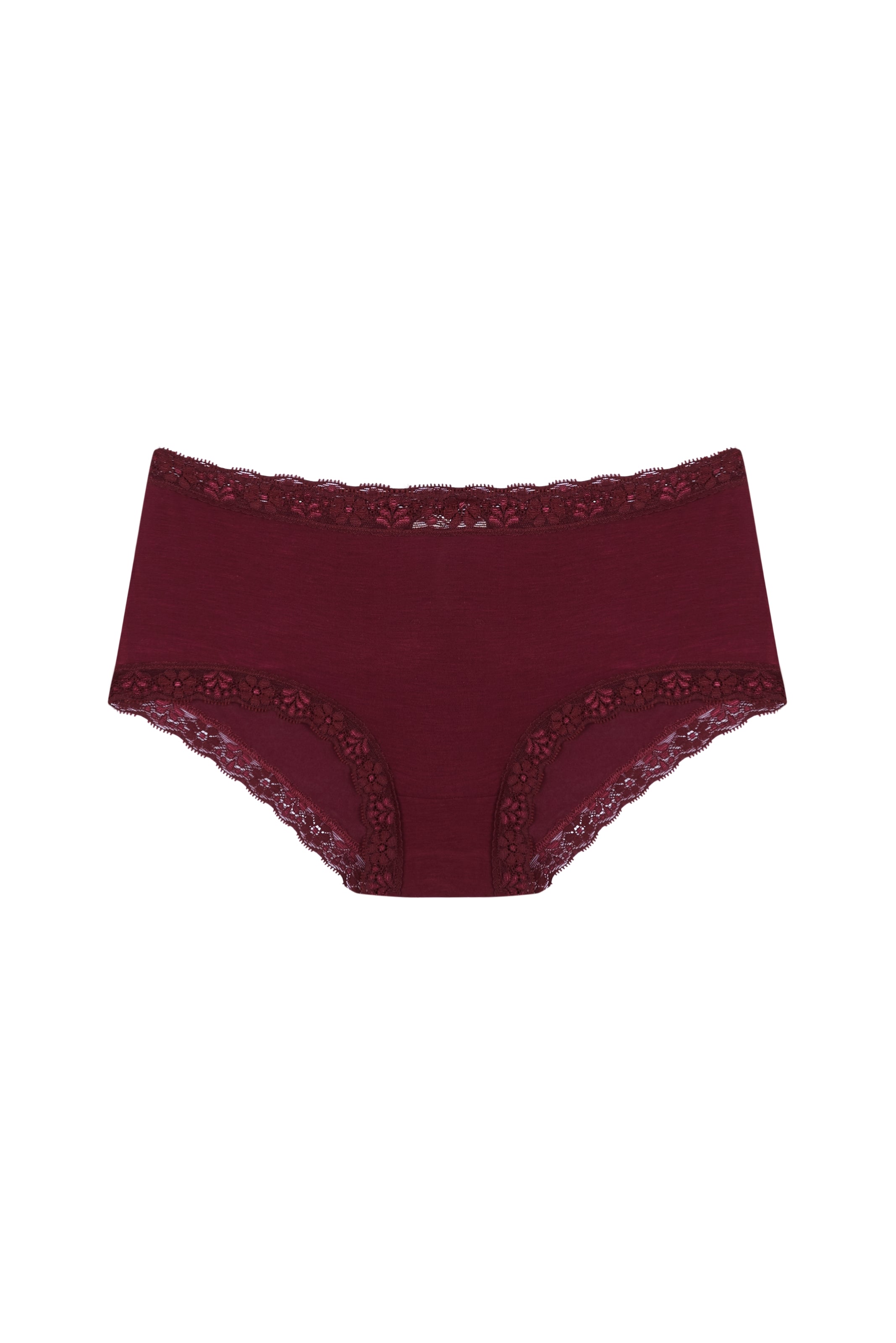 Bottom in maroon culotte style made of bamboo with lace detail.