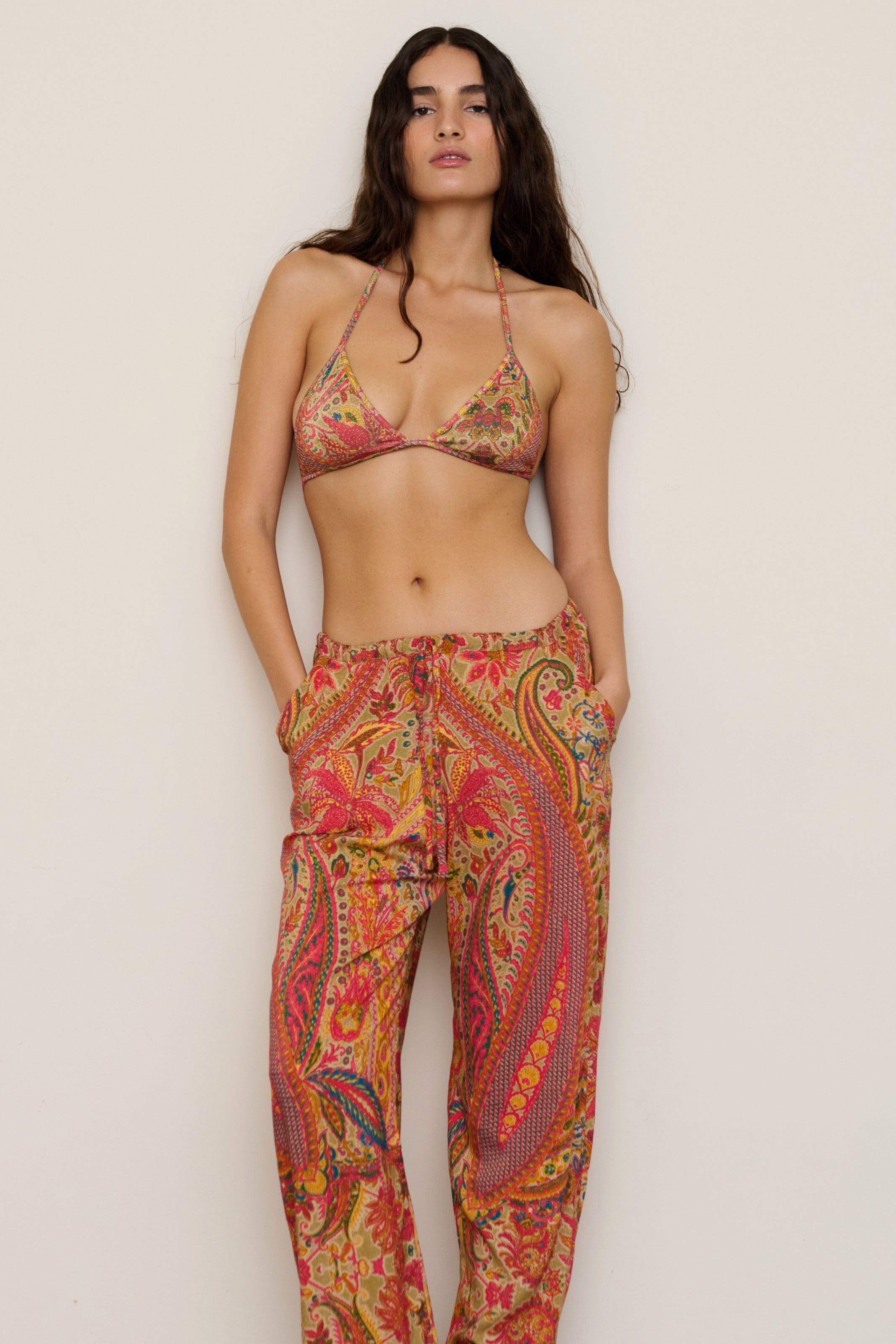 Featuring a bohemian-inspired floral paisley print in warm, multicoloured tones. Crafted from lurex fabric.
