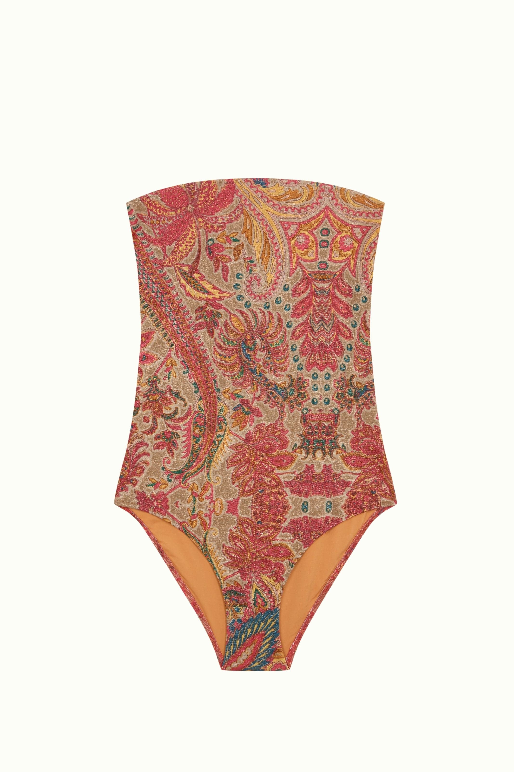 Featuring a bohemian-inspired floral paisley print in warm, multicoloured tones. Made from lurex fabric.